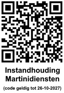 Wilt u de Martinidiensten steunen door middel van een gift? Dat kan op rekeningnummer NL27 RABO 0136784798 tnv Stichting GSp inzake Martinidiensten. Een gift overmaken kan ook door de hieronder geplaatste QR-code te scannen, of als dat niet gaat, deze link te volgen.